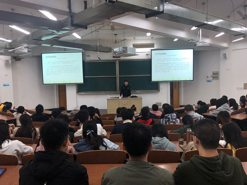 周永生、周永南兩位老師組織新生學(xué)習(xí)了相關(guān)安全文件,觀看了相關(guān)安全事故視頻,對(duì)新生進(jìn)行安全常識(shí)的普及,強(qiáng)調(diào)?;贰⒁字贫?、易制爆試劑領(lǐng)用及使用過程的注意事項(xiàng),規(guī)范廢液及廢棄物的處置。張之林、秦瑤、戴立鋆、何之源四位警官通過案例分析、視頻展示、展板宣傳等多種形式為新生科普了法律法規(guī)、預(yù)防詐騙、網(wǎng)絡(luò)貸款等多方面安全知識(shí),警官們提出希望新生與學(xué)校一起努力,營造一個(gè)舒適、安全的校園環(huán)境。