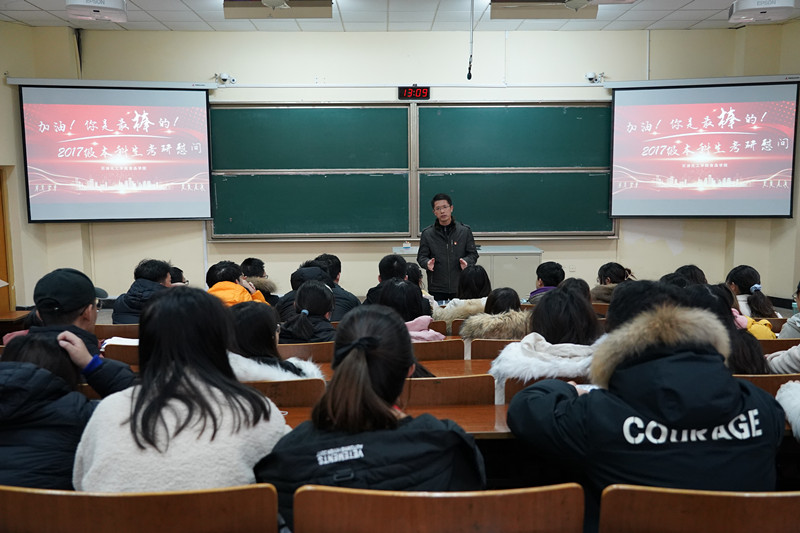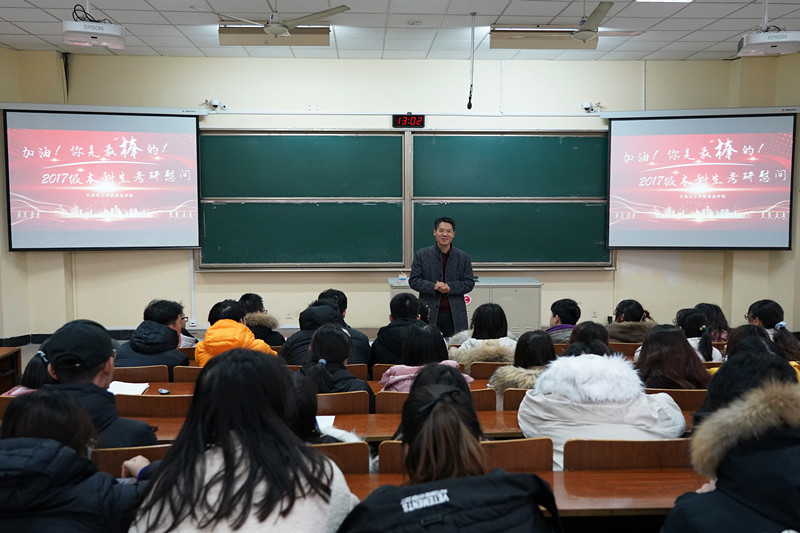 為堅(jiān)定學(xué)生的考研信念,增強(qiáng)考研自信心,積極面對(duì)考研,緩解考研壓力,12月8日,我院在W7召開(kāi)了2017級(jí)本科生考研慰問(wèn)會(huì),參加會(huì)議的有院黨委書(shū)記吳荷平、院長(zhǎng)陳海群、副書(shū)記宣慧、副院長(zhǎng)劉文杰、黃海、院關(guān)工委代表繆鳳仙、學(xué)院本科生輔導(dǎo)員以及2017級(jí)考研學(xué)子。