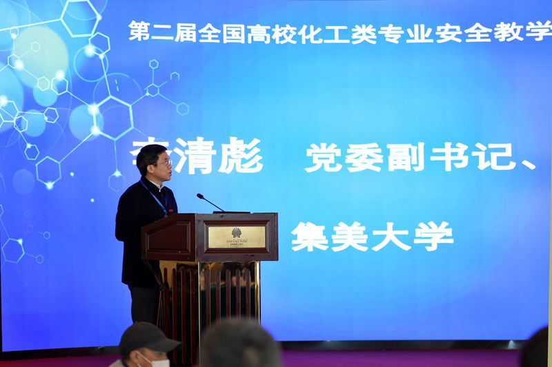 集美大學(xué)黨委副書記、校長李清彪、教育部高等學(xué)?;ゎ悓I(yè)教學(xué)指導(dǎo)委員會、天津大學(xué)夏淑倩、中國石化集團(tuán)安監(jiān)局副局長王玉臺等分別致辭。常州大學(xué)黨委書記陳群代表中國化工安全教育聯(lián)盟對與會嘉賓表示誠摯歡迎并強(qiáng)調(diào)要把安全融入化工專業(yè)教育的全方位、全過程,打造高質(zhì)量、高標(biāo)準(zhǔn)、高水平的化工安全教育,堅持開放融合,深化互動交流。