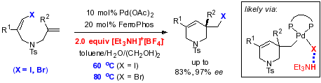 該課題組把這種研究策略稱之為氫鍵作用促進(jìn)的還原消除,該策略確保常規(guī)的手性FerroPhos膦配體就能實(shí)現(xiàn)優(yōu)秀的不對稱烯烴碳碘化反應(yīng),同時(shí)第一次實(shí)現(xiàn)了不對稱烯烴碳溴化反應(yīng)。通過實(shí)驗(yàn)和理論計(jì)算研究,首次清晰的描繪了烷基鹵代烴還原消除反應(yīng)的整個(gè)歷程,修正了僅受熱力學(xué)控制的傳統(tǒng)認(rèn)知,加深了對該基元反應(yīng)的理解。其中的氫鍵策略相信能促進(jìn)和推動(dòng)該基元反應(yīng)在有機(jī)合成的應(yīng)用。