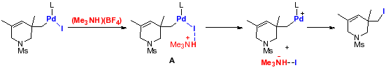 研究發(fā)現(xiàn),便宜易得的三乙胺四氟硼酸鹽(Et3NH)(BF4)作為氫鍵給體,可以和C(sp3)-PdII-I形成氫鍵加和物A。氫鍵的形成削弱了PdII-I鍵,有效促進(jìn)碘負(fù)離配體的配位解離,使得還原消除的反應(yīng)能壘大大降低,最終在保持高效率的同時(shí)可以使反應(yīng)溫度降至60度。