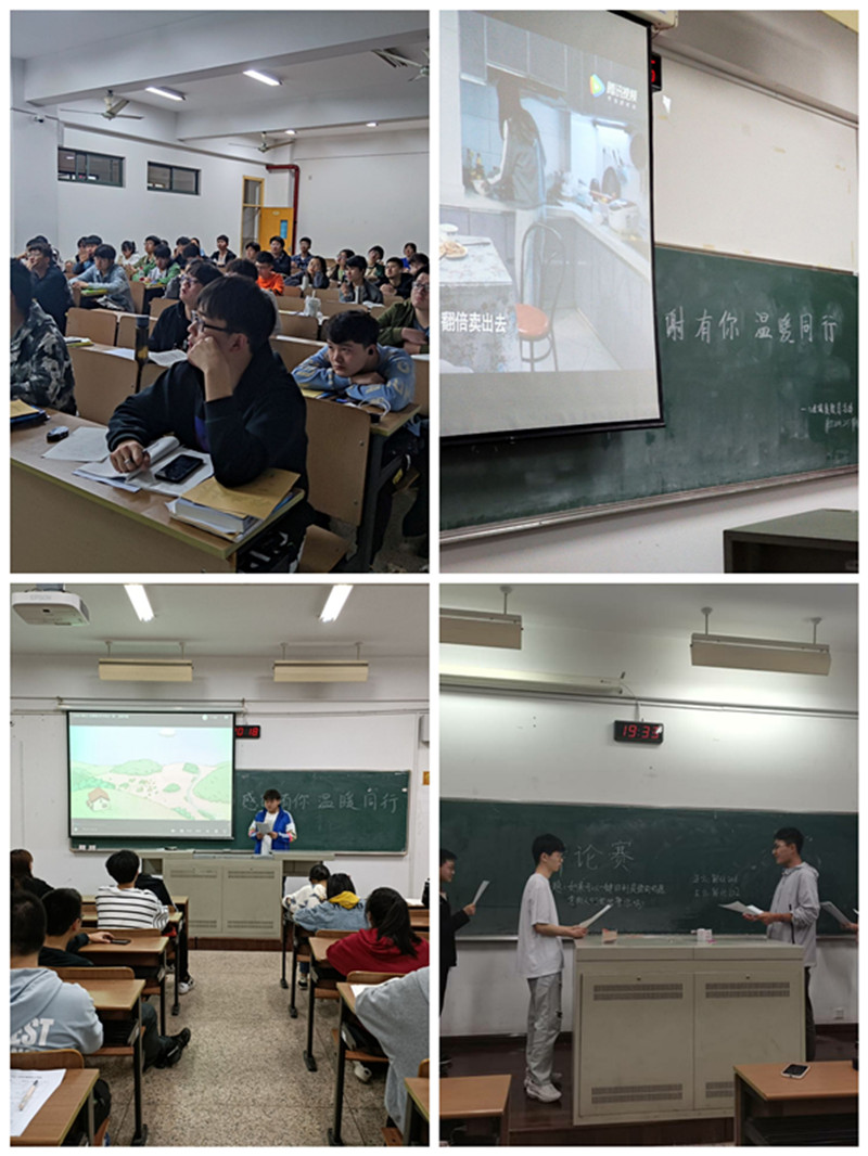 5月5日至9日期間,開展“溫暖同行”主題活動。各班在田徑場上進(jìn)行游戲—畫畫接龍。同學(xué)們通力協(xié)作,猜出畫像的內(nèi)容;應(yīng)化201和應(yīng)化202班在W1401舉行以“疫情是物質(zhì)重要還是精神重要”為辯題的辯論賽,兩隊就此展開激烈的辯論。同學(xué)們活動中又一次意識到了疫情中醫(yī)護(hù)人員的偉大,感受到了我們不是一個人在前進(jìn),我們有國家、家人、朋友、同學(xué)們陪我們走過這段不平凡的歲月。