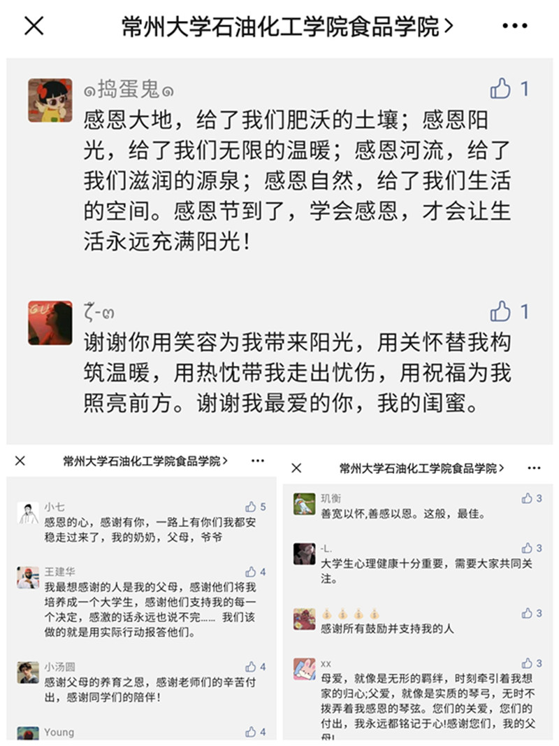 5月12日至16日期間,開展“感謝有你”主題活動。同學(xué)們通過班級團(tuán)建歌唱感恩歌曲,觀看感恩影片,以及在官微下方評論的活動,學(xué)會感恩他人,感恩自己,感恩社會,讓生活變得向上而又多彩。