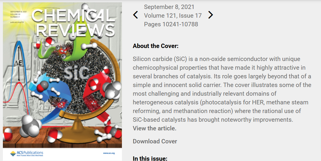近日,郭向云教授應(yīng)邀與意大利國(guó)家研究委員會(huì)、中科院大連化學(xué)物理研究所、SICAT公司、法國(guó)國(guó)家科研中心等研究人員合作撰寫的關(guān)于高比表面積碳化硅催化應(yīng)用的綜述文章“Porous Silicon Carbide (SiC): A Chance for Improving Catalysts or Just Another Active-Phase Carrier?”在化學(xué)領(lǐng)域國(guó)際頂級(jí)綜述類雜志Chemical Reviews上作為封面文章發(fā)表。該論文系統(tǒng)地介紹了碳化硅作為催化劑載體在催化領(lǐng)域中的應(yīng)用情況:(1)精細(xì)化學(xué)品合成,如烷烴氧化制烯烴和含氧化合物、不飽和鍵加氫、C-X鍵形成等;(2)燃料制備,如各種液體燃料、天然氣和氫氣;(3)環(huán)境保護(hù)和修復(fù),如水和空氣中有機(jī)污染物的氧化脫除及分解;(4)燃料電池催化劑,如甲醇和乙醇的電氧化、氧氣還原等;(5)光催化過(guò)程,如光解水產(chǎn)氫、精細(xì)化學(xué)品光催化合成、有機(jī)污染物降解等;(6)碳化硅復(fù)合物無(wú)金屬催化劑等。并就碳化硅催化劑研究中應(yīng)該關(guān)注的重點(diǎn),以及未來(lái)發(fā)展趨勢(shì)作了展望。