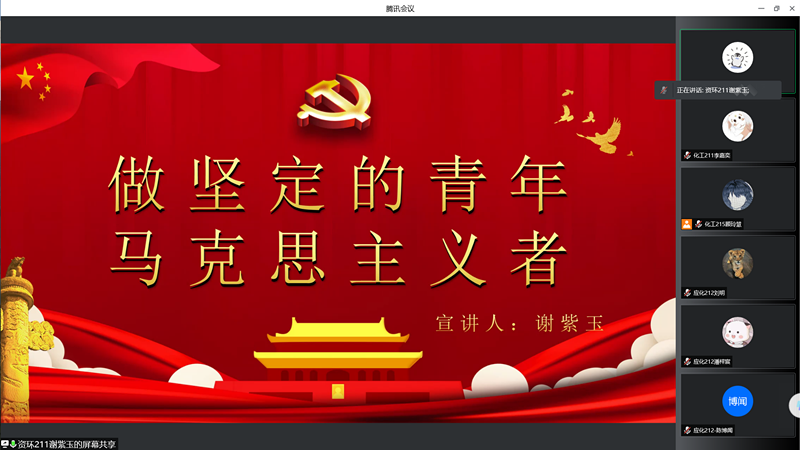為了讓同學(xué)們更加深入地了解馬克思主義,領(lǐng)悟馬克思主義對新中國的影響,貫徹落實習(xí)近平新時代中國特色社會主義思想,幫助同學(xué)們樹立正確世界觀、人生觀、價值觀,4月25日,我院組織學(xué)生開展石化青年說——做堅定的青年馬克思主義者。本次會議由資環(huán)211謝紫玉主講。