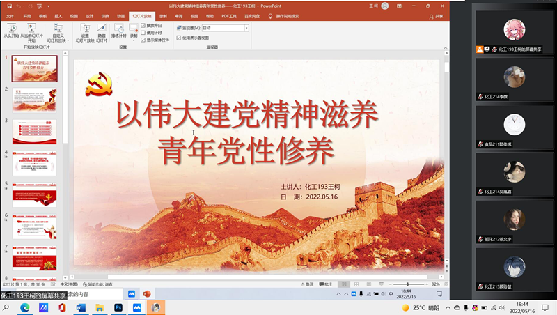 為進一步增強青年學(xué)生對偉大建黨精神理解和領(lǐng)悟,引領(lǐng)青年學(xué)生始終堅定理想信念、踐行初心使命、發(fā)揚斗爭精神。5月16日,我院組織青年講師團宣講活動。本次活動由青年講師團成員化工193王柯主講。