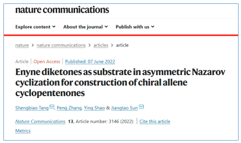手性環(huán)戊烯酮骨架廣泛存在天然產(chǎn)物及藥物分子中。不對(duì)稱催化Nazarovcyclization反應(yīng)是目前公認(rèn)的構(gòu)建手性環(huán)戊烯酮最高效、最便捷的方法。然而,目前發(fā)展成熟的Nazarov反應(yīng)底物種類非常有限。底物種類的局限,進(jìn)而限制了手性環(huán)戊烯酮的多樣性開(kāi)發(fā)。因此,探索和開(kāi)發(fā)新型的Nazarov反應(yīng)底物具有重要意義。