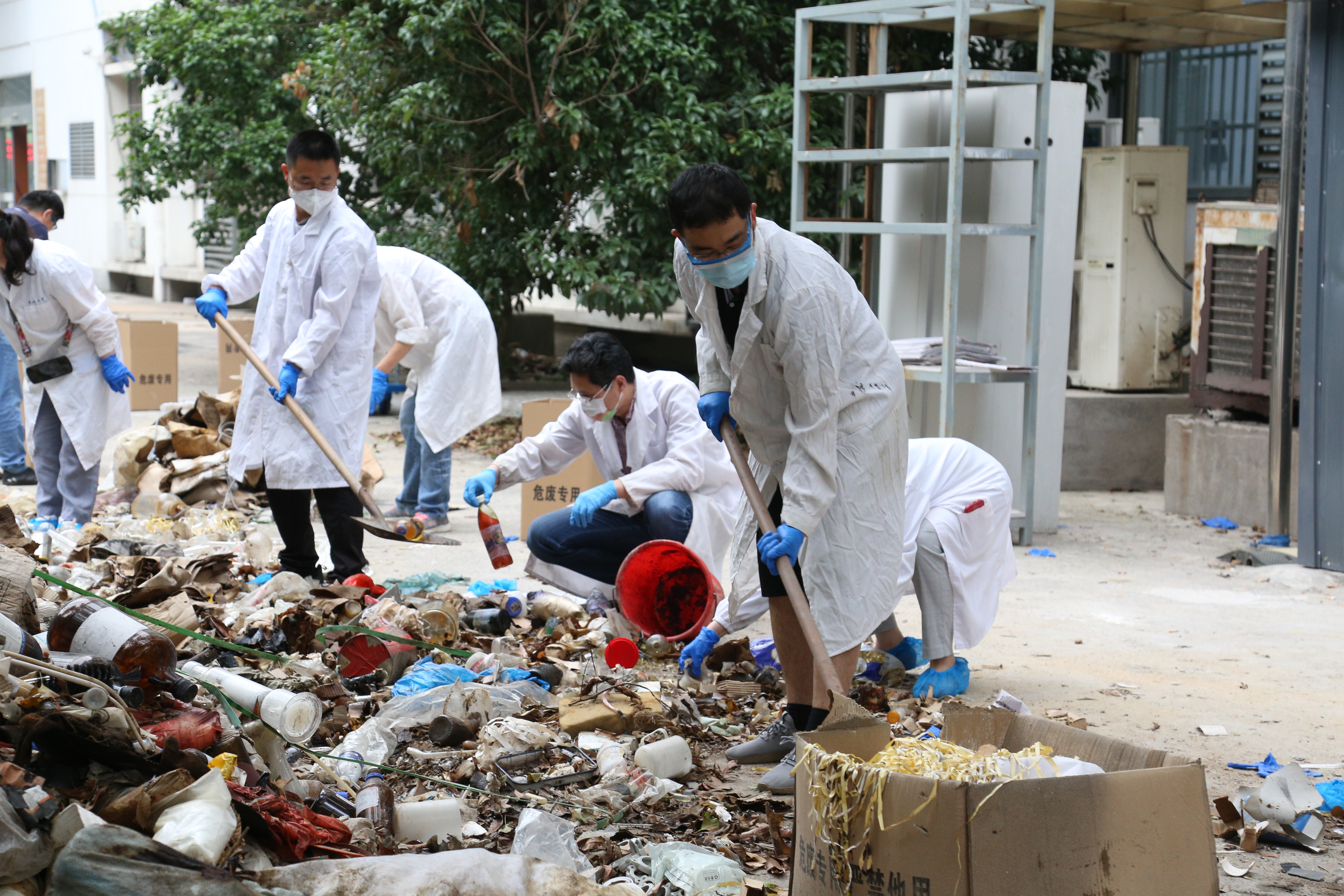 清理化工廢棄物工作復雜、困難、費時、危險,老師們發(fā)揚不怕苦不怕累的精神,用科學的方法對廢棄物進行種類分類、密封、處置,經(jīng)過前后二十多天多次對化工廢棄物堆場的清理工作,所有化工廢棄物全部清理干凈并由專業(yè)環(huán)保公司予以回收。