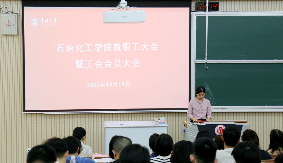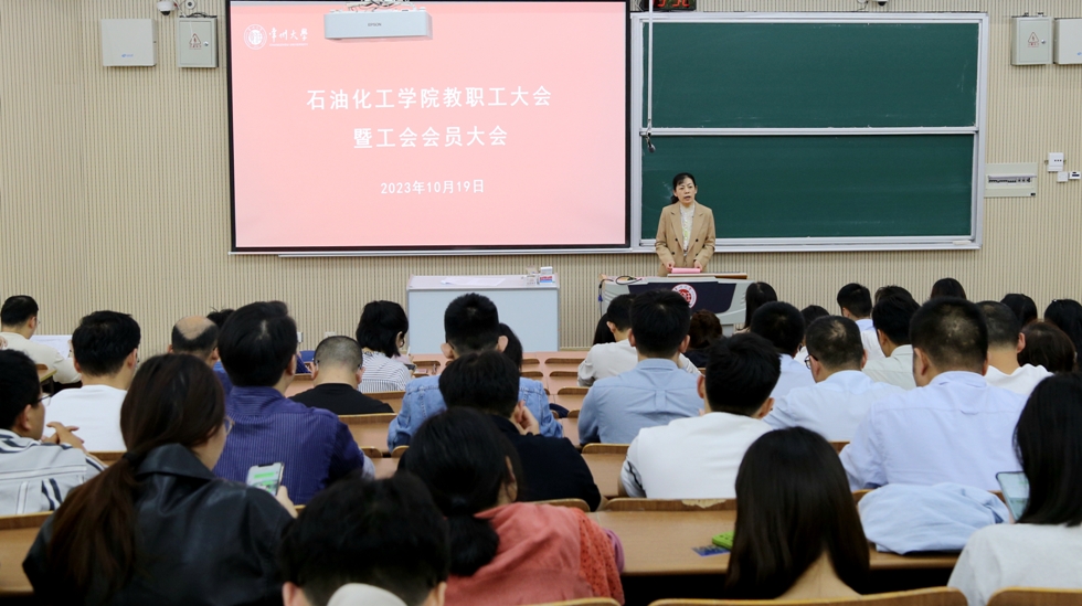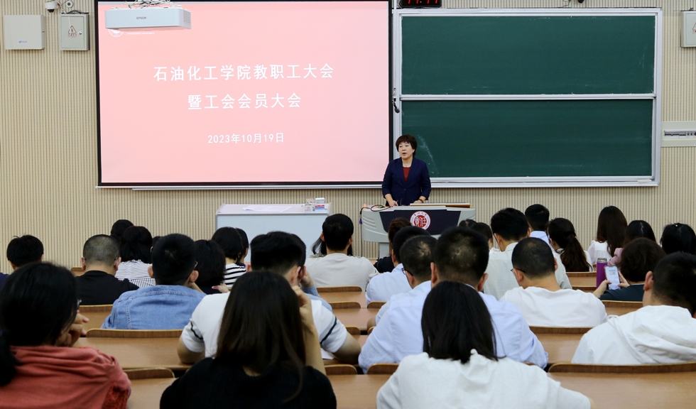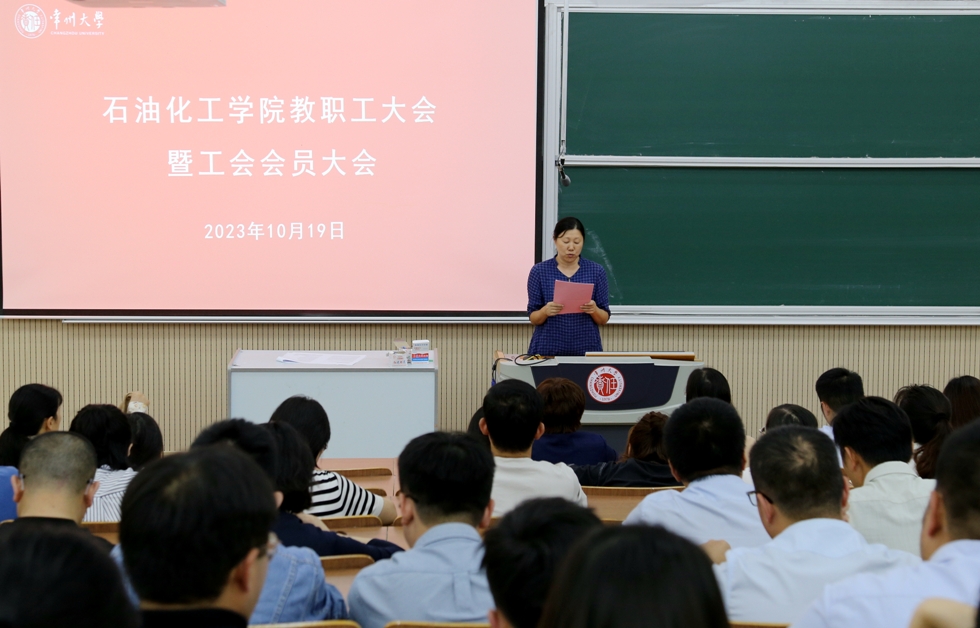 2023年10月19日下午,石油化工學(xué)院在教學(xué)樓W9階召開2023年教職工大會(huì)暨學(xué)院工會(huì)會(huì)員大會(huì),學(xué)院黨政領(lǐng)導(dǎo)、分工會(huì)主席以及全體教職工參加會(huì)議,黨委副書記劉茂燦主持會(huì)議。
