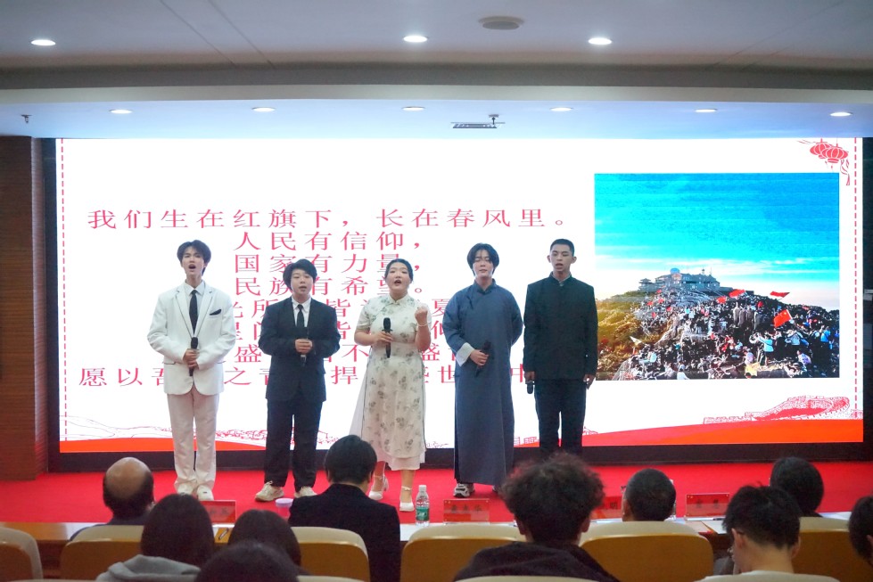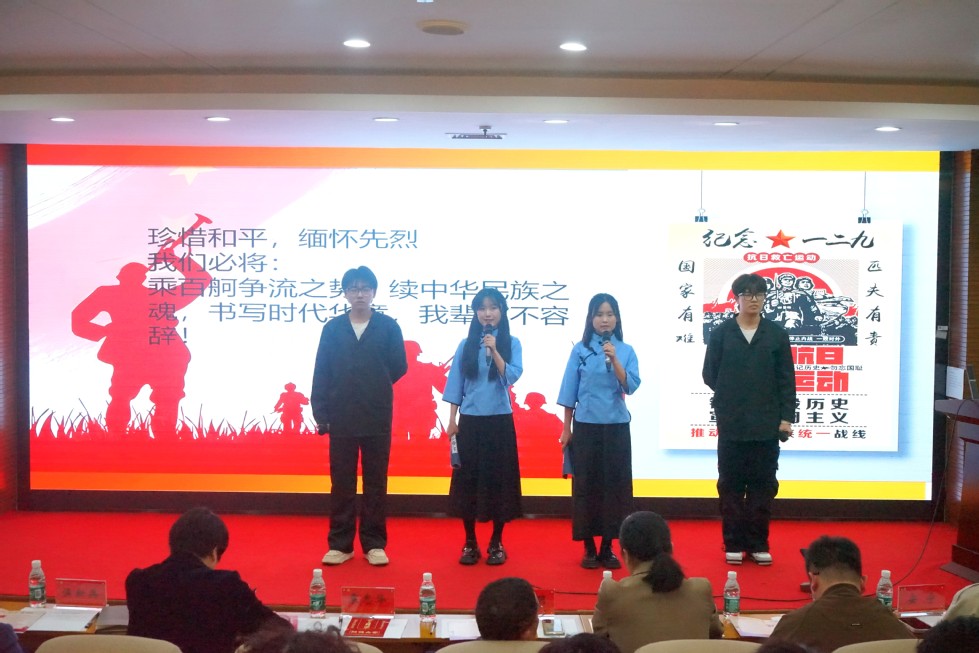 全校共44支隊伍參加本次比賽,經初賽選拔,最終12支隊伍脫穎而出進入決賽。各組選手以多元化的形式,從不同角度切入主題,講述了黃文秀女士、秋瑾女士、劉伯承先生等先烈的故事,贊揚了眾多勤勉為民、無私奉獻的英雄豪杰。他們通過精彩的演繹,重現(xiàn)護國佑民的歷史場景,表達了對先輩精神的致敬與傳承,闡釋了“鑄牢民族之魂,凝聚青春力量”的文化深意,發(fā)出鏗鏘有力的時代之聲,現(xiàn)場觀眾感同身受。