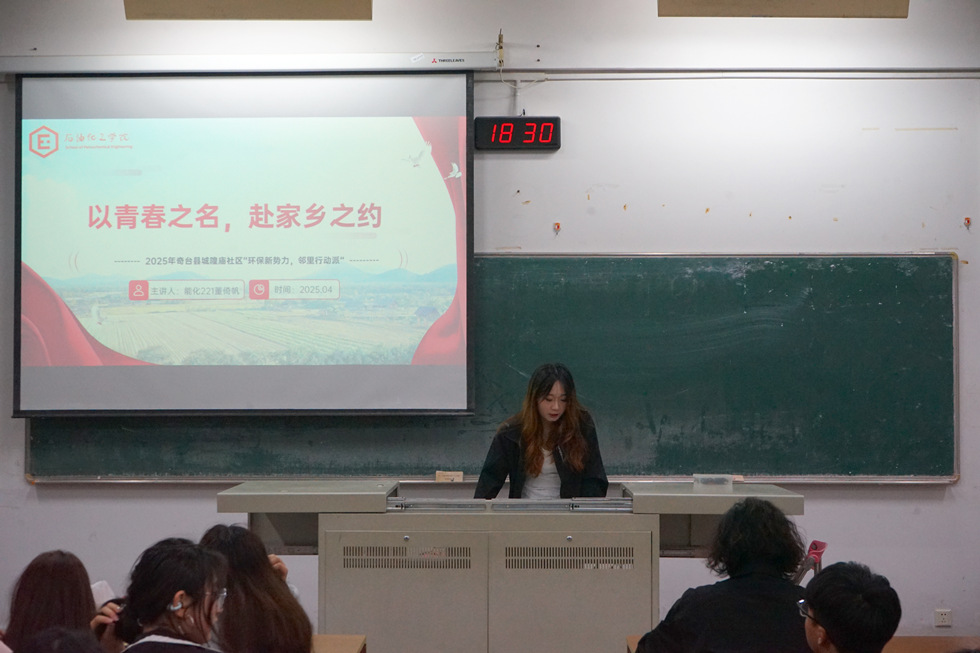 為展示返鄉(xiāng)宣傳成果,體現(xiàn)青春活力,我院于4月22日在W1206教室開展“石化青年說”系列講座第三講——以青春之名,赴家鄉(xiāng)之約。本次講座由化工231王雅靜和能化221董倚帆主講,我院學(xué)生代表參加。