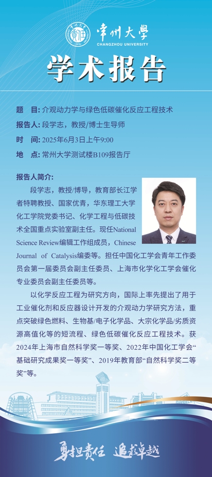 【學(xué)術(shù)報(bào)告】6月3日學(xué)術(shù)報(bào)告—段學(xué)志教授 華東理工大學(xué)