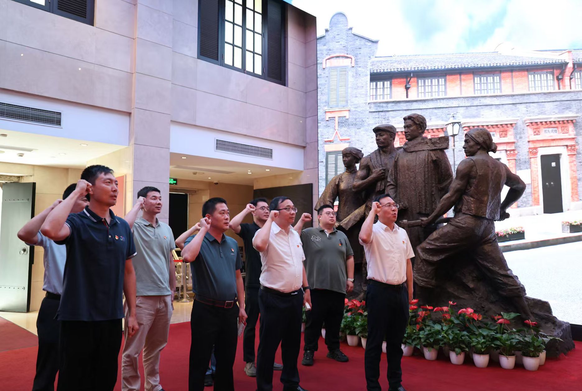 活動(dòng)伊始,雙方黨員參觀了中共二大會(huì)址紀(jì)念館,在參觀序廳、基本陳列館、會(huì)議舊址、黨章學(xué)習(xí)廳和平民女校舊址的過程中,重溫了中國(guó)共產(chǎn)黨創(chuàng)建初期的崢嶸歲月和光榮傳統(tǒng),參觀完黨員們?cè)谛膹d中,重溫入黨宣誓,追溯入黨初心。