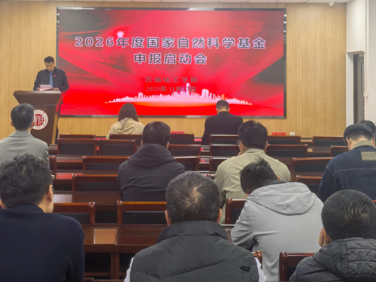 11月12日下午,我院在測試實驗樓B109會議室召開2026年度國家自然科學基金申報啟動會。中科院上海有機所科研管理處副處長王大偉,??茖W技術處處長張屹,石油化工學院院長劉平出席會議,學院青年骨干教師參加會議。會議由石油化工學院副院長黃海主持。