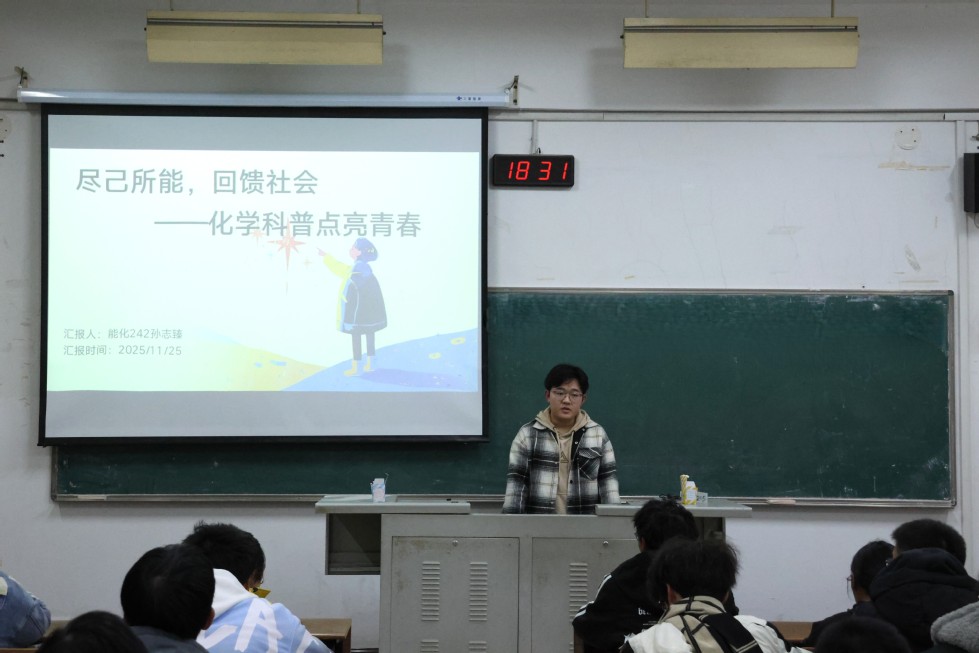 我院于11月25日在W1205教室成功舉辦了“石化青年說”系列講座第三講。本次講座以“盡己所能,回饋社會”為主題,由能化242班孫志臻與化工246班宋羽凡擔任主講。