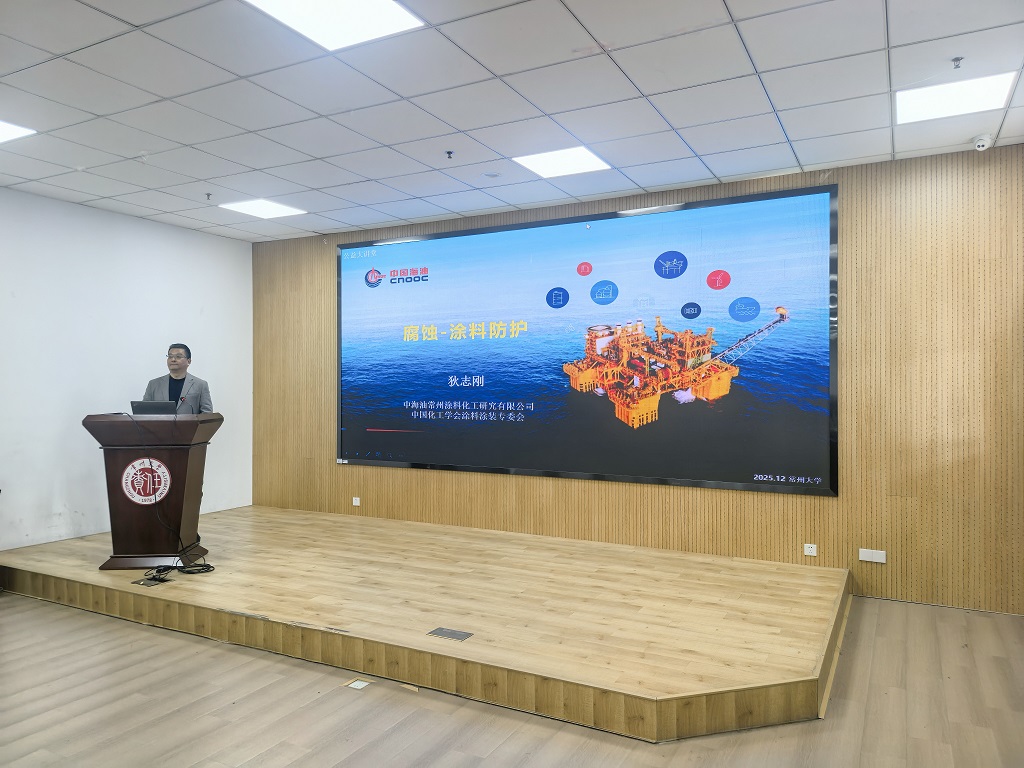 2025年12月18日,中海油常州涂料化工院腐蝕治理首席工程師狄志剛、涂料與防護(hù)工程研究院主任周如東應(yīng)邀為我院師生作學(xué)術(shù)報(bào)告,石油化工學(xué)院黨委書(shū)記業(yè)緒華、院長(zhǎng)劉平、學(xué)院骨干教師和研究生代表現(xiàn)場(chǎng)參會(huì)。報(bào)告會(huì)由劉平主持。