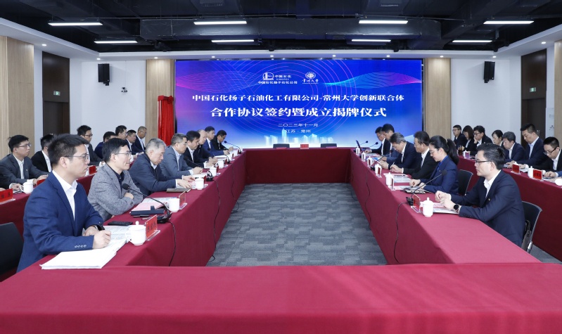 11月6日,中國石化揚(yáng)子石油化工有限公司(以下簡稱“揚(yáng)子石化”)—常州大學(xué)創(chuàng)新聯(lián)合體合作協(xié)議簽約暨成立揭牌儀式在常州召開。揚(yáng)子石化董事長、黨委書記顧越峰,副總經(jīng)理邢建良,集團(tuán)公司高級專家王振新,副總政工師兼黨委組織部(人力資源部)部長(經(jīng)理)潘培青,技術(shù)部副經(jīng)理楊斌,研究院院長、黨委書記陳韶輝,總經(jīng)理辦公室(黨委辦公室)主任陳寶兵,技術(shù)部副經(jīng)理郭向前,常州大學(xué)原黨委書記陳群,黨委書記徐守坤,黨委副書記、校長陳海群,黨委常委、副校長楊琳,黨委常委、副校長李亞飛,副校長晏成林出席會議,常州大學(xué)相關(guān)部門、學(xué)院負(fù)責(zé)人及有關(guān)專家參加會議。晏成林主持會議。