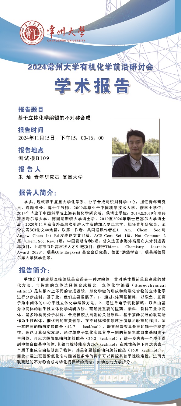 【學術報告】11月15日學術報告—李鵬飛副教授 南方科技大學 ;朱燦青年研究員、錢輝副教授 復旦大學