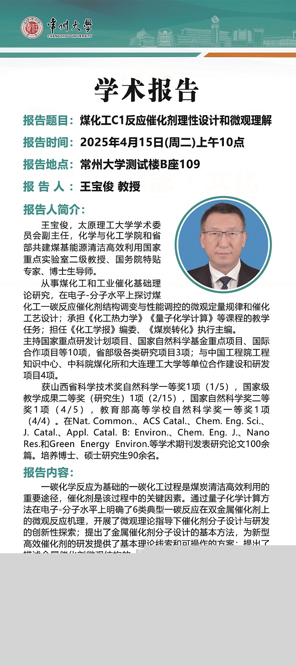 | 【學(xué)術(shù)報(bào)告】4月15日學(xué)術(shù)報(bào)告—王寶俊教授 太原理工大學(xué) |