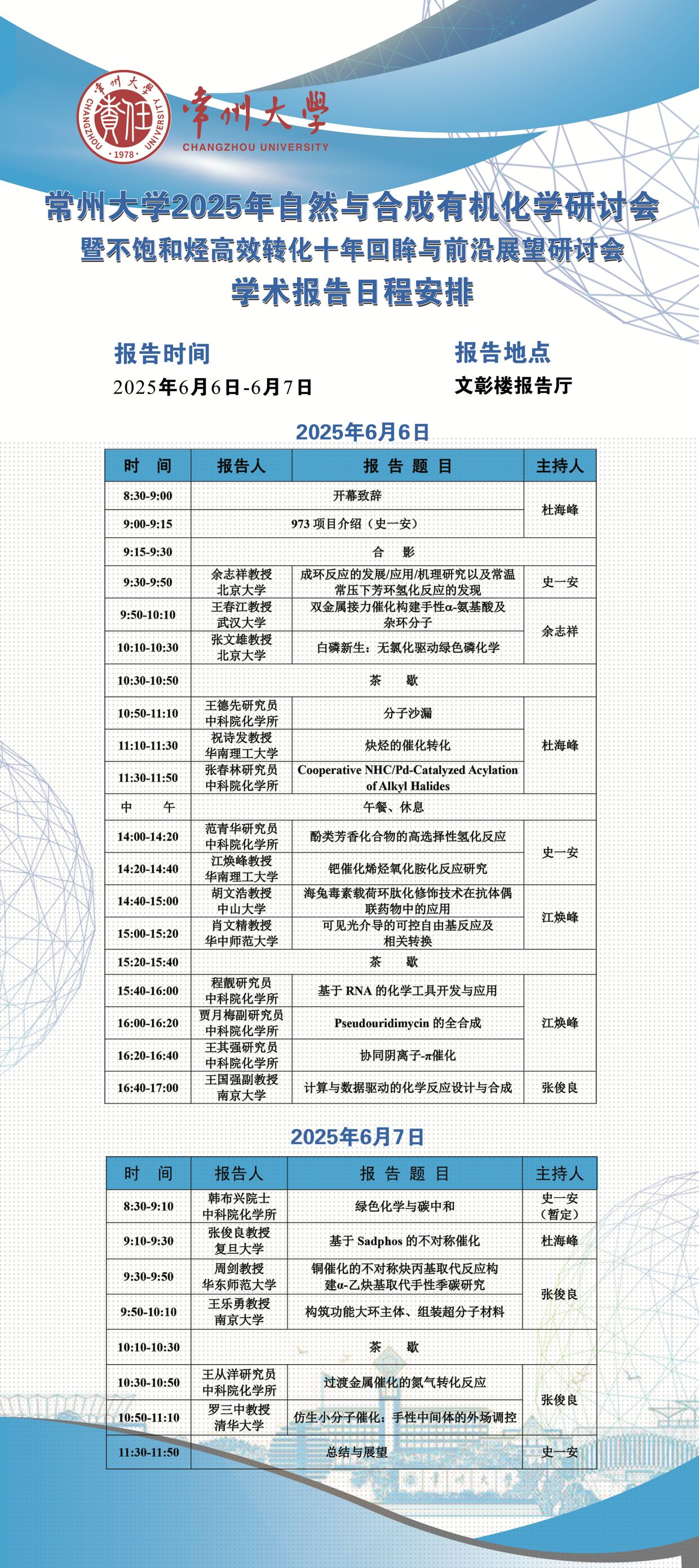 | 6月6日-7日(石化學(xué)院)常州大學(xué)2025年自然與合成有機化學(xué)研討會 |