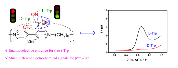 近日,青年教師吳大同與孔泳教授合作報(bào)道了基于β-環(huán)糊精衍生的索烴分子的制備,同時(shí)作為功能性分子實(shí)現(xiàn)基于電化學(xué)的手性識(shí)別研究。這是吳大同博士進(jìn)入常州大學(xué)工作以來(lái)在IF > 5.0期刊上發(fā)表的第四篇論文。該工作得到了國(guó)家自然科學(xué)基金(21804013)和江蘇省自然科學(xué)基金(BK20171194)的資助。